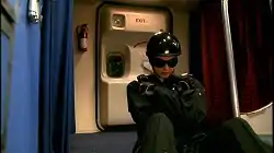 ![]() Mandy (Mia Kirshner), a freelance terrorist, moments before exploding a 747. This scene, broadcast two months after the September 11 attacks, delayed the airing of the 24 pilot. This scene was also edited for sensitive content. | |