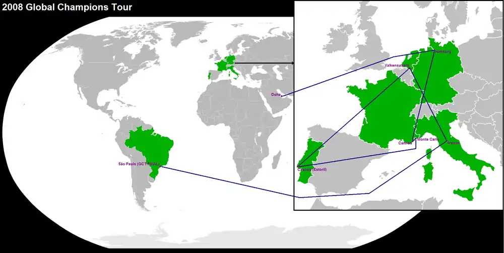 The 2008 Global Champions Tour was the 3rd edition of the Global Champions Tour (GCT), an important international show jumping competition series. The 2008 Global Champions Tour was the first edition of the Global Champions Tour as official series of the FEI.[1]