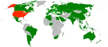 The Summit was the largest gathering of heads of state called by a United States president since the 1945 United Nations Conference on International Organization.[5] Delegations from forty-seven governments including the United States attended, thirty-eight of which were represented by heads of state or government.[6] Delegations from the European Union, the International Atomic Energy Agency, and the United Nations also attended.