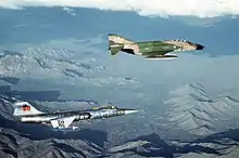 An F-4C-15-MC Phantom II (s/n 63-7420), top, and a German Lockheed F-104G Starfighter (63-13269) aircraft [flown by Retired Lt. Colonel Richard Hays] on a training mission from Luke AFB