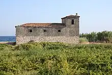 Behind the beachfront row homes often found is a garden or farm plot used to provide fresh produce for the adjacent houses. This however, typically does not include grapevines since these were instead usually grown in estates outside the settlement. During periods of intensive agrarian activity small lodges called ‘Kalyvia’ outside the main settlements were often used by field workers and farmers for temporary accommodation. Closer to or within the village however are found wineries as well other light industry buildings such as olive oil mills.
