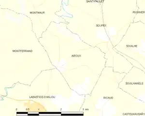 Map of Airoux and its surrounding communes