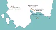 - On 13 February, a week after the conquest of Villa di Chiesa, the Catalan-Aragonese reached Castel di Castro taking position east of the castle, on the hill of Bonaria.[5] In order to relieve their army trapped in the city the Republic of Pisa sent a fleet of 40 galleys, 12 uxer, 60 other ships from Piombino to the command of the Count Manfredi della Gherardesca. The fleet sailed from Porto Pisano, the fleet made a stop at Terranova, today Olbia, where the fleet took onboard 200 horsemen from the Pisan possessions in Gallura along with other forces.[1]