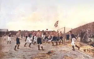 The infant club's fortunes changed forever when a young Scotsman called George Ramsay stumbled across the Villa players' practice match in Aston Park in 1876. He was asked to make up the numbers and they were amazed by his skills, they had never seen such a display of close ball control before. When the game was over, the Villa players surrounded him and invited him to join the club and become their captain.[15] Word spread about how fine a player Ramsay was, spectators began turning up to watch the little man nicknamed ‘Scotty’. He also took charge of training, Ramsay later described the newly formed club's approach to the game as 'a dash at the man and a big kick at the ball'.[16] Ramsay was influenced by the Scottish club, Queen's Park, who pioneered what became known as 'combination football' in his native Glasgow, the intricate passing game he introduced was a revolutionary move for an English club in the late 1870s.[17][18]
