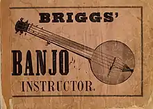 By the 1850s, aspiring banjo players had options to help them learn their instrument.[29] There were more teachers teaching banjo basics in the 1850s than there had been in the 1840s.[29] There were also instruction manuals and, for those who could read it, printed music in the manuals.[30] The first book of notated music was The Complete Preceptor by Elias Howe, published under the pseudonym Gumbo Chaff, consisting mainly of Christy's Minstrels tunes.[30] The first banjo method was the Briggs' Banjo instructor (1855) by Tom Briggs.[30] Other methods included Howe's New American Banjo School (1857), and Phil Rice's Method for the Banjo, With or Without a Master (1858).[30] These books taught the "stroke style" or "banjo style", similar to modern "frailing" or "clawhammer" styles.[30]