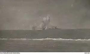 On 23 January 1942 a force of four American destroyers attacked a Japanese invasion convoy in Makassar Strait as it approached Balikpapan in Borneo.[3] On 13 February the Japanese captured the major port of Palembang in eastern Sumatra.[1] On the night of 19/20 February, an Allied force attacked the Japanese eastern invasion force off Bali in the Battle of Badung Strait.[1] Also on 19 February, the Japanese made two air raids on Darwin, on the Australian mainland, one from carrier-based planes and the other by land-based planes.[4] The destruction of Darwin rendered it useless as a supply and naval base to support operations in the East Indies.