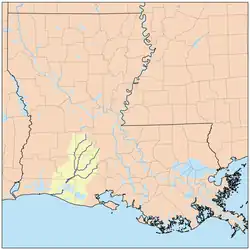 The bayou begins near Lafayette and forms the natural boundary separating Lafayette Parish and Acadia Parish to the west and Acadia Parish and Vermilion Parish to the south.[3]