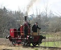 The Beamish Tramway is 1.5 miles (2.4 km) long, with four passing loops.[40] The line makes a circuit of the museum site forming an important element of the visitor transportation system.[41][42]