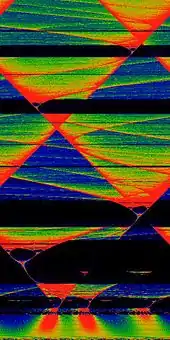 The bifurcation parameter r is shown on the horizontal axis of the plot and the vertical axis shows the set of values of the logistic function visited asymptotically from almost all initial conditions.