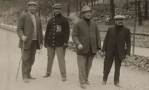 L to R: Cy Young, Jake Stahl, Carrigan and Michael T. McGreevy during spring training in 1912