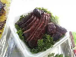 Burnt ends are flavorful pieces of meat cut from the "point" half of a smoked brisket.[1]