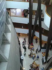 In 2003, the Cameri moved into the Tel Aviv Performing Arts Center complex, adjacent to the New Israeli Opera, the Municipal Library and the Tel Aviv Museum of Art. The new theatre has five auditoriums: Cameri 1, the largest auditorium, has 930 seats; Cameri 2 has 430 seats, the Black Box seats 250, and the Rehearsal Hall seats 160.[2]