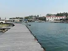 Canadian Pacific Airlines built this modern float base on the waterfront of Yellowknife, Northwest Territories, Canada in 1946 to serve as an office, staff housing, and mooring for its fleet of bush planes. Yellowknife was a very active aviation centre during the late 1940s as a result of renewed gold exploration after World War II. The aviation industry however was very tumultuous and many bankruptcies and mergers occurred throughout history, and many airline companies came to use this float base in Yellowknife, including: Canadian Pacific Airlines (1946–1949), Yellowknife Airways (1949–1951), Associated Airways Limited (1951–1956), Pacific Western Airlines (1956–1966), Northward Airlines (1966–1978), and Air Dogrib (1978–1980s).