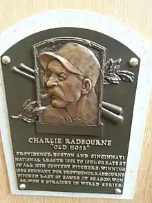 Radbourn was posthumously inducted into the Baseball Hall of Fame in 1939. In 1941, a plaque was placed on the back of his elaborate headstone, detailing his distinguished career in baseball.[12] In the 2001 book The New Bill James Historical Baseball Abstract, Bill James ranked Radbourn as the 45th-greatest pitcher of all time.