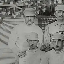 Radbourn is also known for being the first person photographed gesturing the middle finger. In 1886, an image was captured of him "flipping off" a member of the New York Giants in a team photo.[15]