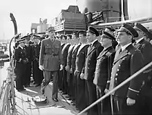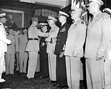 De Gaulle's unit gained recognition for repeatedly crawling out into no man's land to listen to the conversations of the enemy, and the information brought back was so valuable that on 18 January 1915 he received the Croix de Guerre. On 10 February he was promoted to captain, initially on probation.[15] On 10 March 1915, de Gaulle was shot in the left hand, a wound which initially seemed trivial but became infected.[23] The wound incapacitated him for four months and later forced him to wear his wedding ring on the right hand.[3]:61[15][24] In August he commanded the 10th company before returning to duty as regimental adjutant. On 3 September 1915 his rank of captain became permanent. In late October, he returned to command of 10th company.[15]