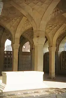 Chausath Khamba, also spelled Chaunsath Khamba, is a tomb built during 1623–24. It is located in Nizamuddin precincts of Sufi Muslim shrines and tombs in New Delhi, India. The name means "64 pillars" in Urdu and Hindi. It was built by Mirza Aziz Koka, son of Ataga Khan, as a mausoleum for himself, at the time when Mughal Emperor Jahangir ruled from Delhi. Mirza Aziz Koka had served several times as Jahangir’s Governor of Gujarat before he died in Gujarat.[1][2][3]