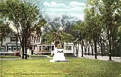 Columbus square was notable for its bronze statue, Columbus, designed by French sculptor Frédéric Auguste Bartholdi and cast in bronze in 1893 by the historic Gorham Manufacturing Company, which was located nearby on Adelaide Avenue.[6] The statue, of Christopher Columbus, is a recasting of a statue prepared in sterling silver by the Gorham company for the Columbian World's Fair in Chicago, 1893.[7] The statue is listed on the National Register of Historic Places and is sited in Columbus Square Park, a public park of the City of Providence Parks Department.[8]