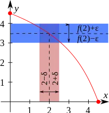 Explicitly including the definition of the limit of a function, we obtain a self-contained definition: Given a function as above and an element of the domain , is said to be continuous at the point when the following holds: For any positive real number however small, there exists some positive real number such that for all in the domain of with the value of satisfies