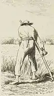 Millet created a series of woodcuts entitled The Four Hours of the Day (1860). This idea is reportedly derived from the medieval "Book of Hours" that held that rural life was structured by the rhythms of God and nature.[38] In this work, the man and woman walk to the fields, silhouetted by the morning sun. The simple composition depicts the harshness of their lives. Van Gogh said of Millet's work, "they seem to have been painted with the very earth they were going to till."[40]