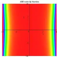 The cardinal hyperbolic cosine function coshc(z) plotted in the complex plane from -2-2i to 2+2i