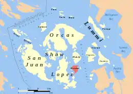 Decatur Island is one of the San Juan Islands in Washington state, USA, located just east of Lopez Island across Lopez Sound and just south of Blakely Island across Thatcher Pass. Named by the Wilkes Expedition in 1841 for naval officer Stephen Decatur,[1] it is 3.524 square miles (9.127 km²) in area.