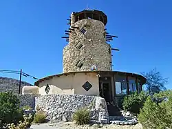 The stone tower was built over several years beginning in 1922 by Bert Vaughn, a San Diego real estate developer who owned Jacumba. Vaughn dedicated it to the pioneers, and highway and railroad builders who opened up the area.[6] It also served as a roadside advertisement of a restaurant and bar located on the old road across from the tower.[7] The five-story Tower houses a museum and has an observation deck on its upper level. The gift shop at the base of the Tower is a later addition.