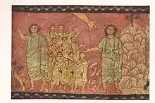 Hand of God in Exodus and the Crossing of the Red Sea wall painting Dura Europos synagogue
