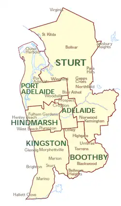 ![]() Division of Sturt in South Australia, as of the 2019 federal election | |