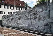 The site was the location of the decisive 1499 Battle of Dornach, which ended the Swabian War and effectively ensured the independence of the Old Swiss Confederacy from the Holy Roman Empire. The battle is memorialized in a 1949 relief wall.