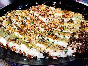Doupi (Chinese: 豆皮; pinyin: dὸupί), also called "triple delicacy doupi" (三鲜豆皮, sānxiān dòupí),[1] is a breakfast dish from the city of Wuhan in Hubei province. It is often sold as a street food.[2]