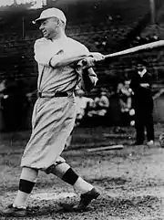 In 1913, Lewis batted .298 with no home runs.[11] Babe Ruth made his major league debut on July 11, 1914, and Lewis pinch hit for Ruth during the game.[1] He was the only player to pinch hit for Ruth during the latter's major league career.[12] Lewis finished the 1914 season with a .278 batting average.[13] In 1915, Lewis batted .291 with 31 doubles,[14] which was the second-most in the league.[15] The Red Sox faced the Philadelphia Phillies in the 1915 World Series, and won in five games. Lewis batted .444 (8-for-18) against the Phillies.[16] He also recorded five out of the 12 RBIs in the series for Boston.[1] He drove in the game-winning runs in both Games 3 and 4, and made several catches that helped Boston win the series.[17][18] After the World Series, Lewis returned to the San Francisco Bay Area, where he performed vaudeville shows at the Pantanges Theatre in Oakland for $500 a week ($14,464 in current dollar terms).[19][20]