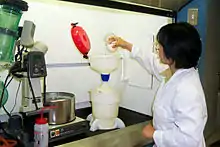 An ECO Funnel or a safety ecological funnel is a funnel designed to handle hazardous liquid chemical waste and decrease the risk of environmental contamination, as well as help laboratories stay compliant with local health and safety codes.[1]