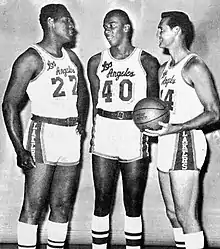 Baylor standing next to teammates Jerry Chambers (center) and Jerry West (right), circa 1966