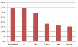 According to official statistics, Kosovo benefits from 450 - 500,000,000 million euros in annual revenues as a result of the diaspora. Around 30 percent of households in Kosovo have access to international remittances – in form of money or goods. 49% of donors live in Germany, 24% in Switzerland. Remittances made 17.5 percent of country's GDP in year 2000 (275 million Euros).[11]
