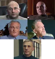 | 2015 | Spectre | Christoph Waltz; he, identified as being of Austrian ancestry, is initially known by his birth name as "Franz Oberhauser", but reveals that he began using his mother's maiden name, "Blofeld", after faking his own death. Later, Bond disfigures him in an explosion, leaving him with a milky eye and a scar reminiscent of Pleasence's portrayal. | Captured by Bond and arrested by M. Currently in MI6 custody. |
