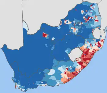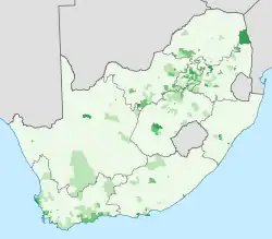 According to Statistics South Africa, white South Africans comprised 7.7% of the total population of South Africa in 2022. Their proportional share in municipalities may be higher than census figures indicate, given an undercount in the 2001 census.[48]