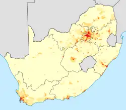 Throughout South Africa, but mostly concentrated in urban areas. Population by provinces, as of the 2022 census: