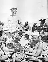 Lieutenant von Durling with prisoners at Shark Island, one of the German concentration camps used during the Herero and Namaqua genocide