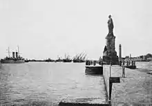 Port Said entrance to Suez Canal, showing De Lesseps' statue