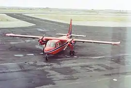 FIGAS purchased another Beaver late in 1982, and two Islanders in 1983, allowing operations to be restarted.[9] The Beaver was retired in 1985, with a third Islander acquired in 1986, another in 1987 and another in 1989. Two more, one equipped for fisheries patrol missions, were received in 1990, with its latest Islander purchased in 1992.[10] The fleet then totalled five,[11] having sold one and had two damaged beyond repair.[12][13]