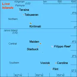 Filippo Reef is a reef that is asserted to be in the Pacific Ocean at 05°30′S 151°50′W / 5.500°S 151.833°W, 450 kilometres (280 mi) east of Starbuck Island in the Line Islands. The reef was reported by the master of the Italian barque Filippo as having been seen on 28 June 1886. From an unidentified report of breakers dated 1926, it was estimated to have a water depth of only 0.6 to 0.9 metres (2 to 3 ft), and appeared to be about 1.6 kilometres (1.0 mi) long northwest to southeast, and less in width.[1][2]