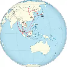Cholera dissemination across Southeast and eastern Asia 1820–1822