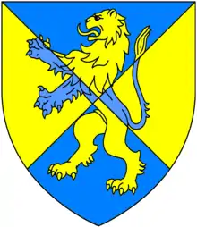 Arms of Gould: Per saltire azure and or a lion rampant counterchanged[17]