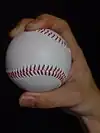 A four-seam fastball, also called a rising fastball, a four-seamer, or a cross-seam fastball, is a pitch in baseball. It is a member of the fastball family of pitches and is usually the hardest (i.e., fastest) ball thrown by a pitcher. It is called what it is because with every rotation of the ball as it is thrown, four seams come into view.[1] A few pitchers at the major league level can sometimes reach a pitch speed of over 100 mph. It is often compared with the two-seam fastball.[2]