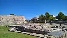 As the citadel of the city in antiquity, it was the site of the main temples, as well as the First Ancient Theatre.[1] Archaeological excavations in modern times have uncovered an early Christian basilica dedicated to Saint Achillios, an early Byzantine bath, remnants of the early Byzantine walls constructed under Justinian I (r. 527–565), and a middle Byzantine church.[1]