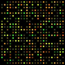 Microarrays measure the amount of mRNA in a sample that corresponds to a given gene or probe DNA sequence. Probe sequences are immobilized on a solid surface and allowed to hybridize with fluorescently labeled "target" mRNA. The intensity of fluorescence of a spot is proportional to the amount of target sequence that has hybridized to that spot and therefore to the abundance of that mRNA sequence in the sample. Microarrays allow for the identification of candidate genes involved in a given process based on variation between transcript levels for different conditions and shared expression patterns with genes of known function.