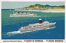 Promotion poster for Ocean Monarch passing Queen of Bermuda