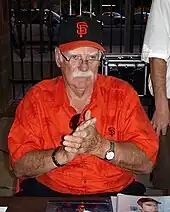 On July 23, 2005, the Giants retired Perry's uniform number 36.[69] Perry was inducted into the Bay Area Sports Hall of Fame on March 9, 2009.[70] Perry was honored on April 9, 2011, at AT&T Park with a 2010 World Series ring along with other San Francisco Giants greats Willie McCovey, Orlando Cepeda, and Willie Mays.[71] He was honored again on April 7, 2013, with Mays and Juan Marichal receiving a 2012 World Series ring,[72] and on April 18, 2015, with a 2014 World Series ring along with Mays, McCovey, Cepeda, and Marichal.[73] The Indians invited Perry to throw the ceremonial first pitch before their Opening Day game for the 2015 season.[74] On August 13, 2016, the Giants unveiled a bronze statue of Perry at the corner of Second and King streets outside of AT&T Park.[75]