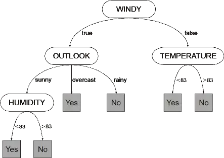 For example, consider the decision tree below to decide whether to play outside: